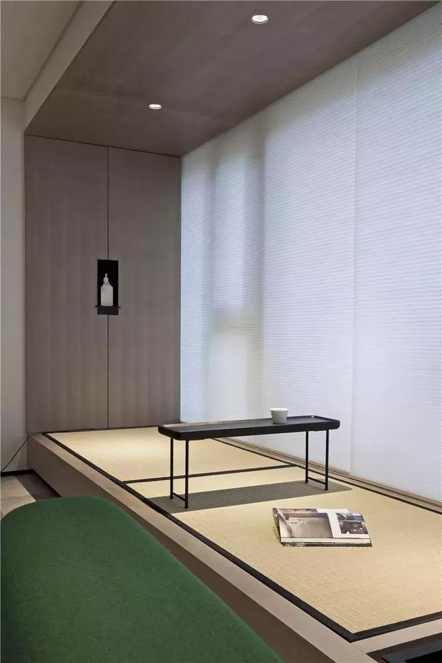 在客廳靠窗戶(hù)的地方安置了一處可席地而坐的休閑區(qū)域,斜陽(yáng)西下的歸家時(shí)分,拾階而上,盤(pán)腿而坐,漸漸將塵世留在身后,直至滿(mǎn)眼青翠。