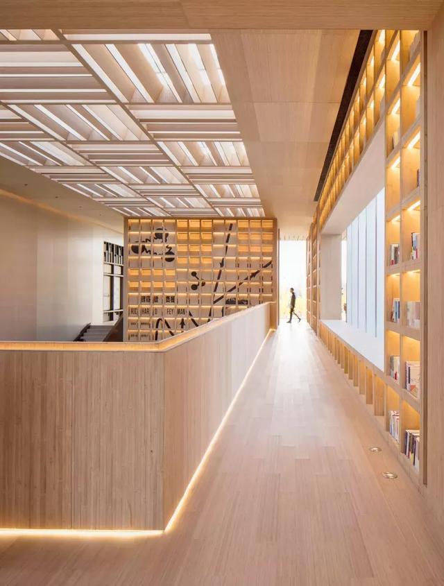 光自通透的玻璃窗折射而下的光影變換,天花與地面、墻面的裝飾盡是原生態竹木,素樸的木色溫暖而澄明,在此漫享閱讀之趣,恍若倏忽間穿越到記憶里的象牙塔時代,校園里的青蔥爛漫如影片般一一閃現。