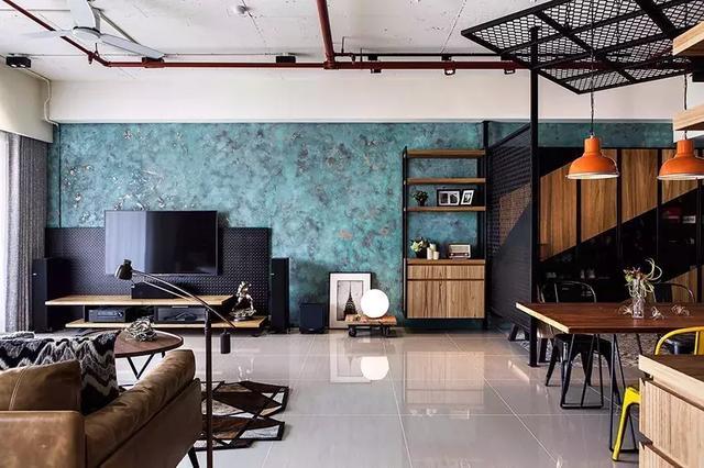 引人注目的搖滾樂背景墻,暴露的管道,組合成一個個性十足的工業氣氛空間。