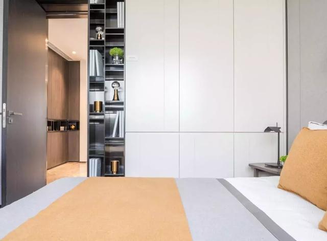 在主臥套房內打造具有獨立衛生間、書房及強大衣帽收納系統的整體功能,體現出生活的高品質需求。整體空間配以考究的家具、精致的飾品合理的擺放,呈現出為注重生活品質和格調的精英人士所定制的居家環境。