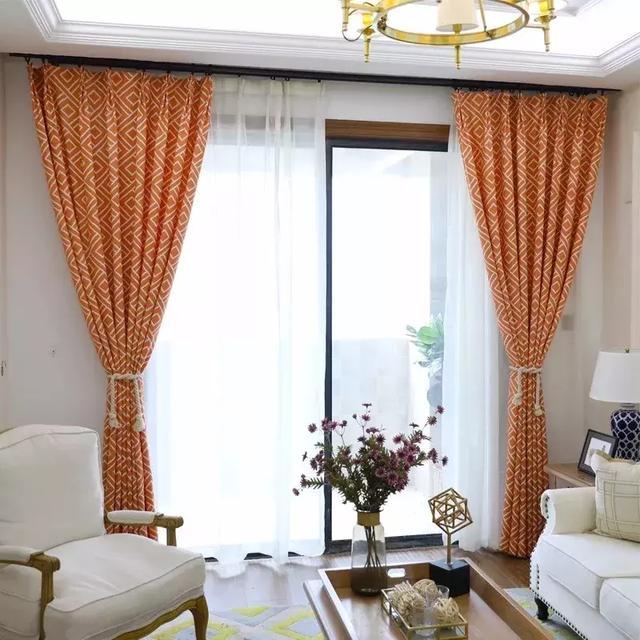 客廳是整個家居環境的體現,主要承擔著會客和娛樂休閑的功能。如果經常在客廳里看電視,那么客廳的光線就不應該太強,建議選擇具有擋光、隔熱功能的厚棉麻或滌綸材質的窗簾。