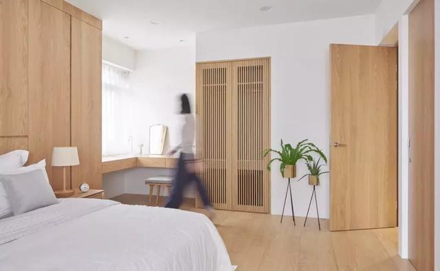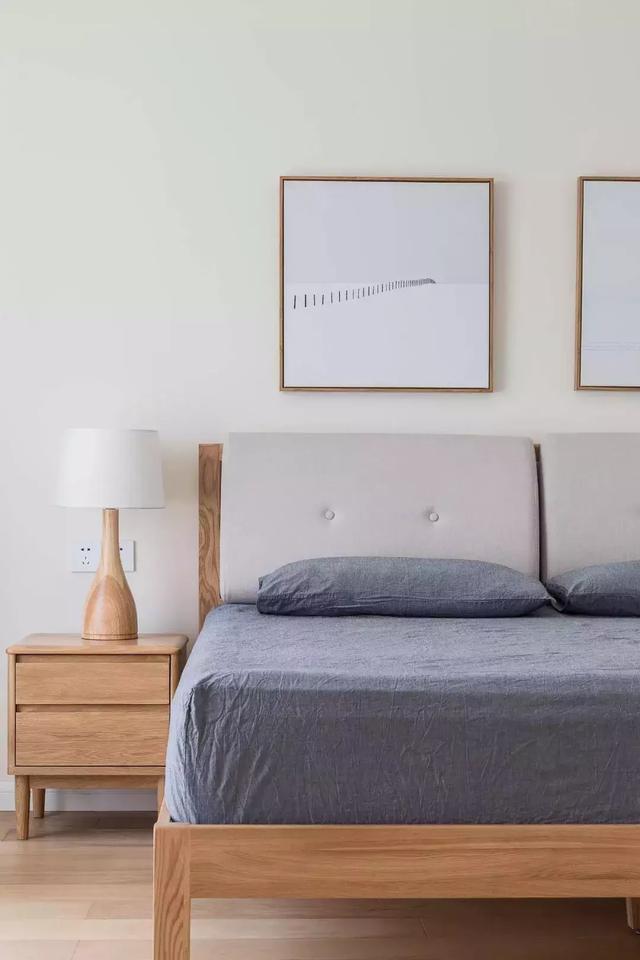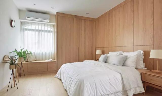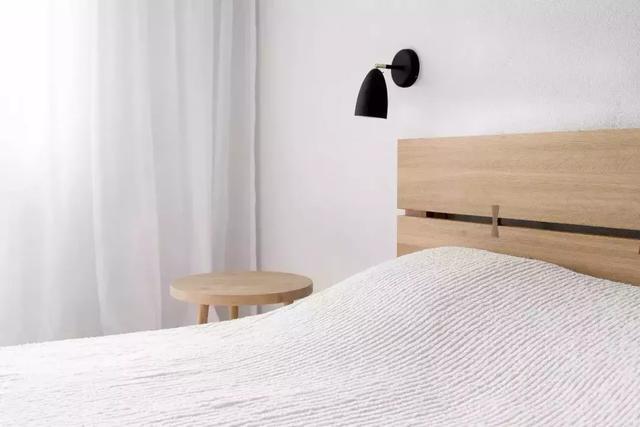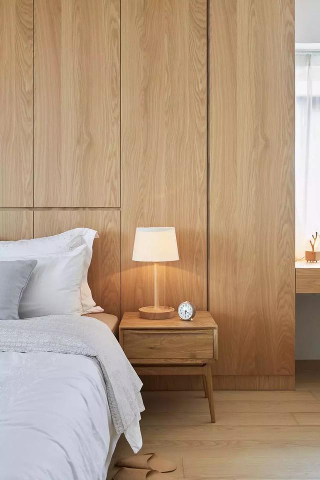 主臥以素色為基調,用淺色的家具打造一個安靜的睡眠空間,讓人放松下來,享受這一個個靜謐的夜晚。