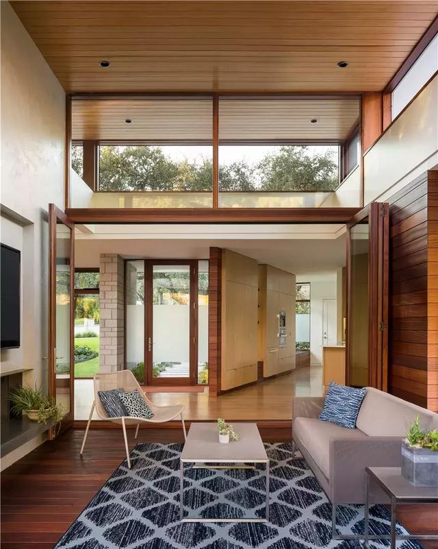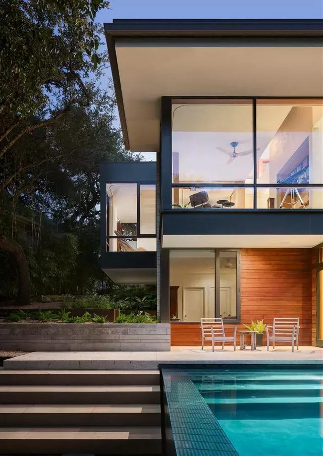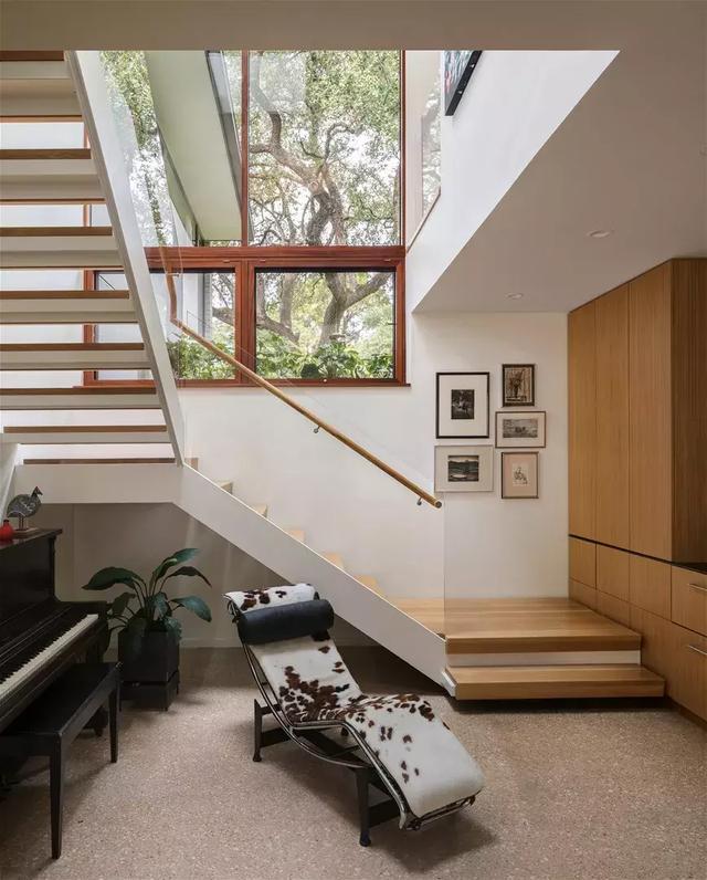 臥室和閱讀角落嚴(yán)密地坐落在下面的形式,每一個(gè)都通過一個(gè)有序的計(jì)劃連接起來,這個(gè)計(jì)劃提供了延伸房子長度的內(nèi)部視圖。
