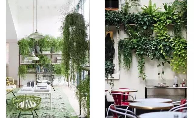 在墻面種植攀爬或垂吊的藤本植物。這種形式的綠植墻比較常見,一般會出現(xiàn)在房子外面的墻面上,綠意盎然,別具一格的韻味。將其形式用于屋內(nèi),也別有一番風(fēng)味哦!一般會選擇爬山虎、絡(luò)石、常春藤、扶芳藤、綠蘿等植物,這類綠化形式簡便易行、造價較低、透光透氣性好。