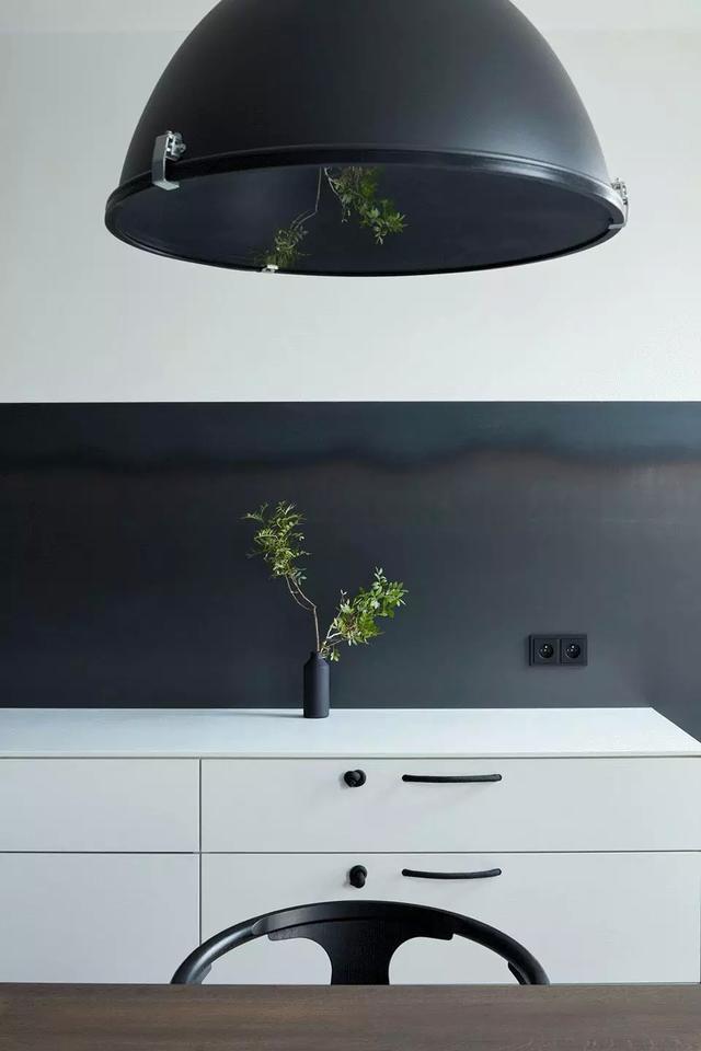 廚房工作臺(tái)結(jié)合了黑白色可麗耐。實(shí)木餐桌與工作臺(tái)連為一體。室內(nèi)設(shè)計(jì)包括裝飾品及各種配件均統(tǒng)一搭配。