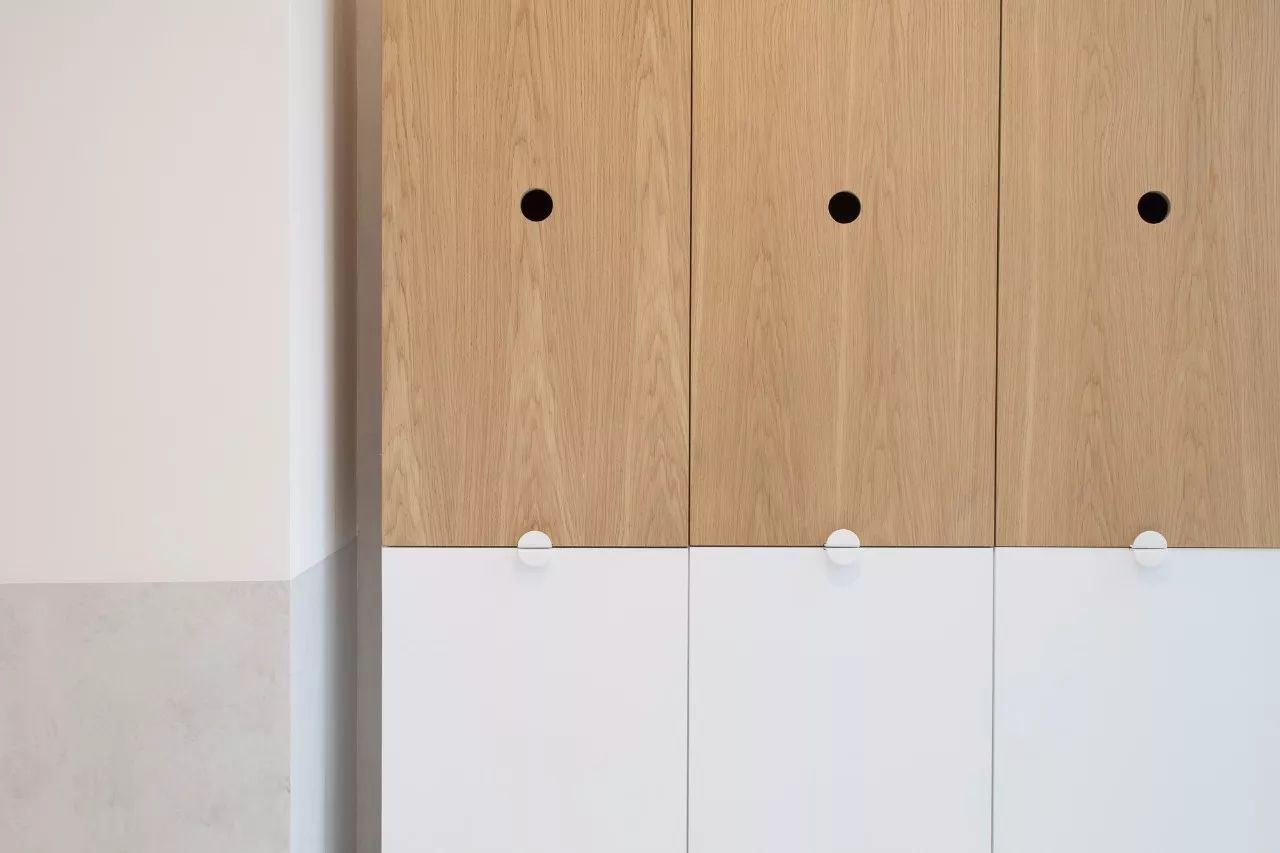 二樓設計中將門和儲藏空間隱藏在墻面中,創造了一個干凈且完整的區域,在陽光充足的時候,這是一個很溫暖的屬于家的空間。