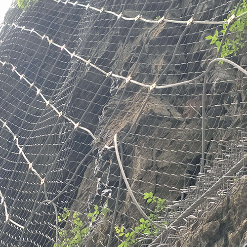 主動防護是將鋼絲繩網和菱形網緊貼山體,