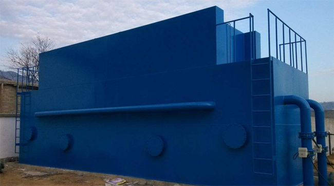 一體化凈水器,設備包括混凝池、沉淀池、過濾池、水質穩定裝置、反沖洗裝置、水泵及電氣控制柜。一體化凈水器采用攪拌機混和,不受水量變化而影響效果。投加混凝劑的原水由進水管進入混凝池內,用特制的攪拌機攪動,使水中的懸浮物和混凝劑充分接觸反應形成礬花。水經加混凝劑混凝后形成礬花,流到設備的沉淀池內進行沉淀,沉淀池采用斜管沉淀法,經過梯形斜板沉淀室沉淀完成固液分離,沉淀下來的污泥排入泥斗。經沉淀后的水流到過濾池過濾,濾池結構:底部為布水管,中部為石英砂,上部為無煙煤。過濾速度為10m/h,最后清水流到清水池內消毒處理后飲用。過濾池反沖周期為12小時左右,反沖時間為5-10分鐘。一體化凈水設備占地面積小,與一般凈水構筑物相比,可節省占地50%以上,高度在4.10米左右,室內外均可安置;便于擴建,改造,再用,便于搬遷或易地再用。