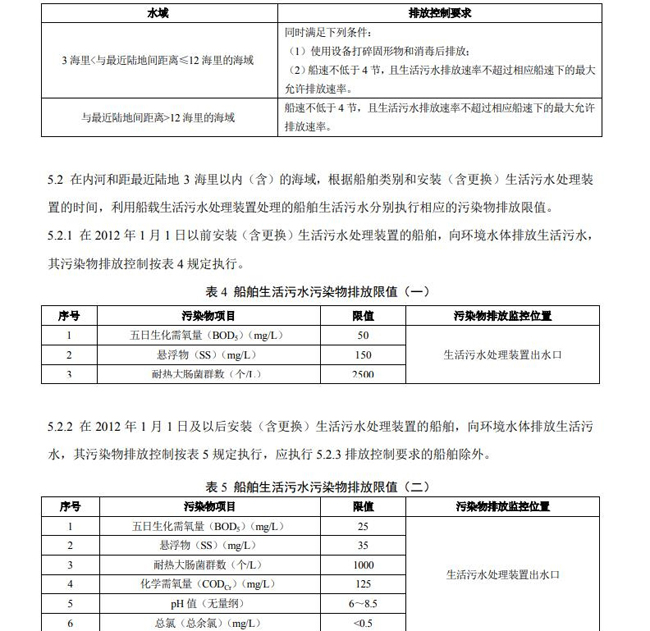 船舶污水處理排放標(biāo)準(zhǔn)