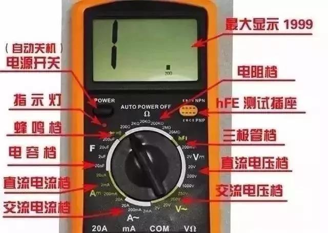萬用表能測量直流電流、直流電壓、交流電壓和電阻等,有的還可以測量功率、電感和電容等,是電工最常用的儀表之一。