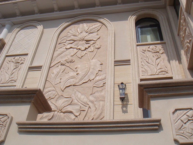 砂巖浮雕是零放射性石材,對人體無傷害。大理石、花崗石都存在微量放射性,長期生活在其中對人身會有潛移默化的傷害。從裝飾風格來說,砂巖浮雕創造一種暖色調的風格,顯素雅、溫馨,又不失華貴大氣。在耐用性上,砂巖浮雕則絕對可以比擬大理石、花崗石,它不會風化,不會變色。