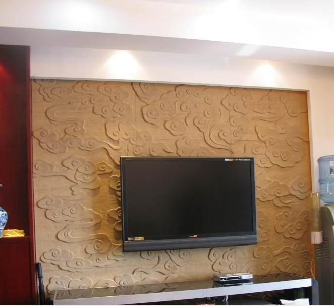砂巖是一種無光污染,無輻射的優質天然石材,對人體無放射性傷害。很多設計師都將它應用于沙發背景、電視背景墻的裝飾。在客廳用紋理粗獷的砂巖鑲嵌出一面仿古意味的主體墻作電視背景墻,既可以吸音,又能烘托出家電的金屬質感,形成強烈的對比,十分具有現代感,又透露出一種視覺上的愉悅, 能體現主人的個性與 品味的。