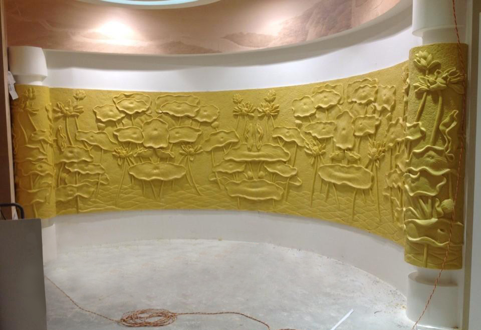 人造砂巖浮雕在不同光照條件下都會呈現出自然優美的視覺效果。在室內裝飾及室外慕墻,藻井、柱面、點狀裝飾,實現 幽雅的格調。