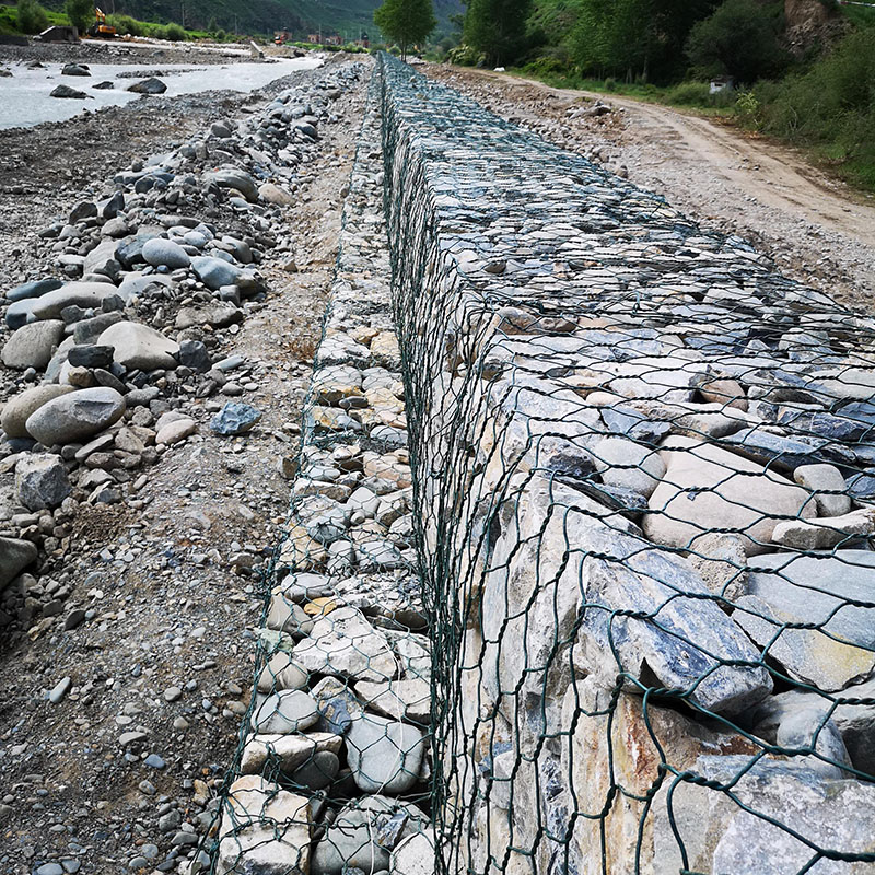 PET石籠網是一種無污染、耐腐蝕、抗紫外線、新型環保材料。它是由PET聚酯線絞合編織而成六角形網。PET聚酯線它是一種各項性能都比鐵絲、鋼絲出色的一種產品、它具有不易斷裂、高強度、韌性好、耐高溫、耐酸堿、抗UV輻射、耐氣候老化、表面光滑、故使用壽命長等特點,因此PET石籠網壽命能夠達到60年以上。