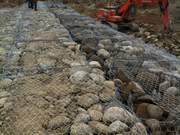 當織造鐵絲或聚合物格形結構發生變形,而不損失強度時,甘愿選用這類結構,將石籠網內部填料,用抗風化的堅硬石塊作填料,它在石箱或石籠沉排中不會因磨蝕而很快破碎。裝有不同類型的塊石的石籠網有不同的特性。