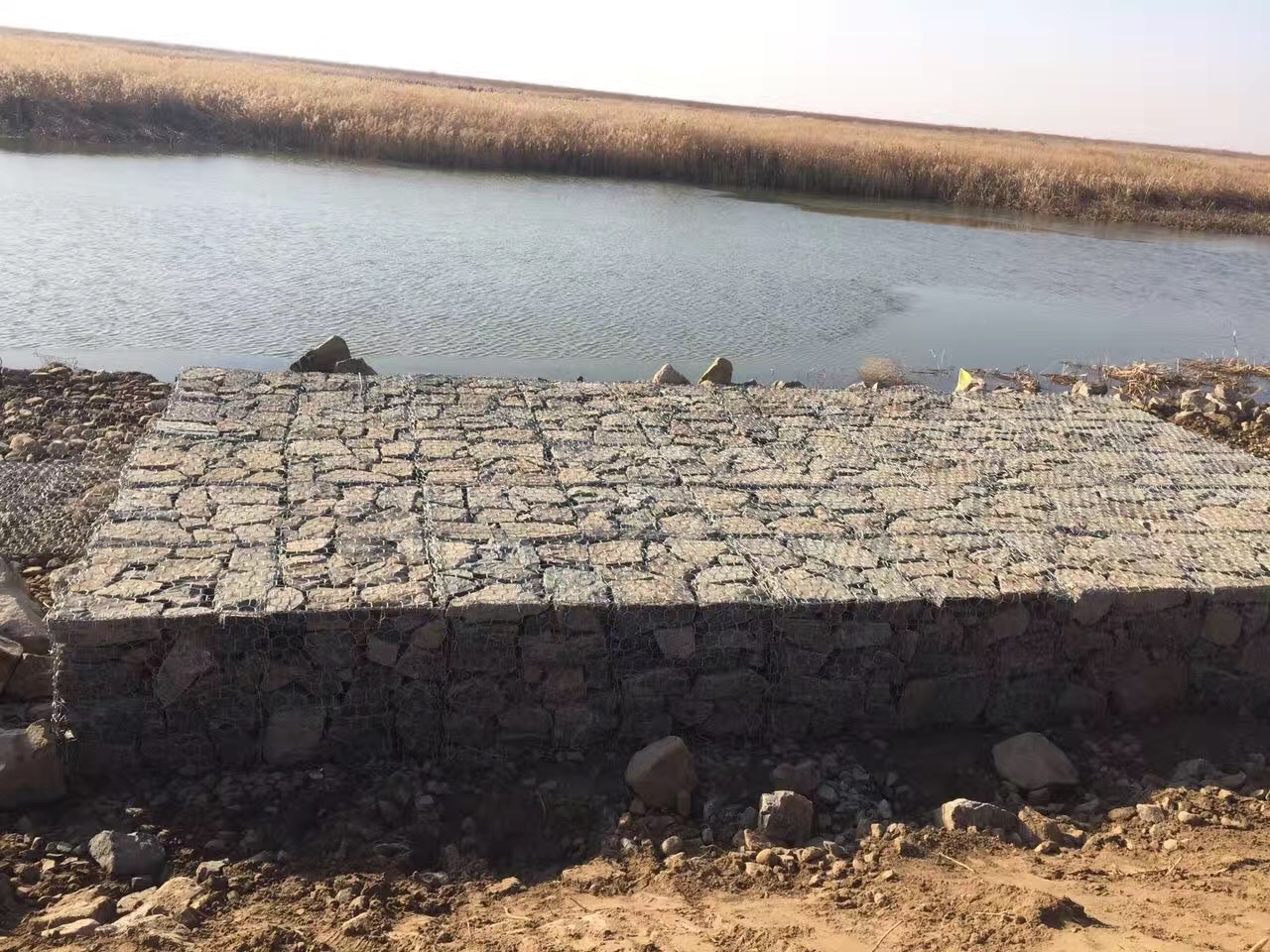 河道中經(jīng)常把一種格賓網(wǎng)制作成網(wǎng)箱、網(wǎng)墊或者網(wǎng)兜進(jìn)行使用,被人們稱為河道格賓網(wǎng)。格賓網(wǎng)采用高爾凡鋼絲編制形成,有高爾凡格賓網(wǎng)之稱,高爾凡是鋅鋁合金的俗稱,根據(jù)鋁含量占比的不同,高爾凡又分為鋅-5%鋁-混合稀土合金和鋅-10%鋁-混合稀土合金兩種常見的鋅鋁合金組合。高爾凡具有良好的耐腐蝕性特點(diǎn),可以熱浸在金屬表面以增強(qiáng)金屬的耐腐蝕性。與純鋅絲相比,熱浸鋅鋁合金后,金屬構(gòu)件就具有了耐磨性強(qiáng)、耐腐蝕性好、施工性能優(yōu)異等特點(diǎn)。高爾凡格賓網(wǎng)就是利用了這一特性,使普通鋼絲編制的格賓網(wǎng)具有了不俗的使用壽命。尤其是在河道這種常年潮濕的環(huán)境中更是發(fā)揮了它的作用。