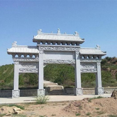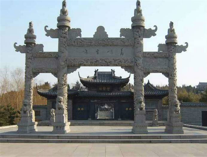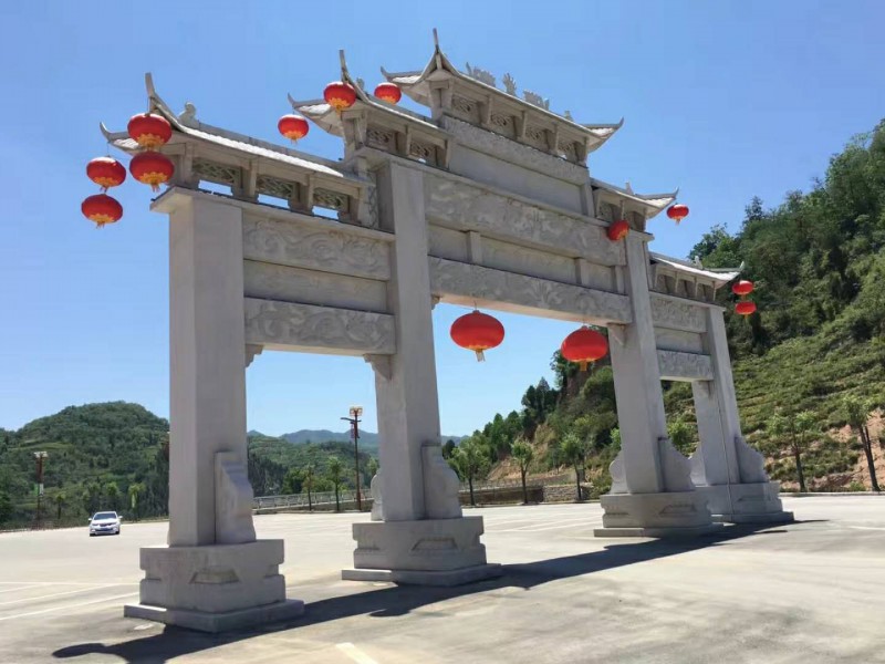 大型石雕牌樓則可映襯、渲染周圍環境.使其他建筑物更為絢麗多姿,如院學府石雕牌樓、牌坊、文廟武廟石雕牌坊、寺廟壇觀石牌坊、陵園墓地石牌樓、勝景勝跡牌坊、豪門宅第石牌樓、衙署府第石牌坊等,除起標識、空間分界作用外,還能起到裝飾美化作用。