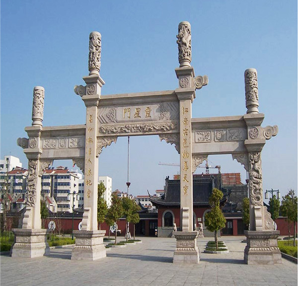 一般現在園林景觀中選用的都是石牌樓,性能更好,更綠色環保,而且經久不衰,經歷風吹日曬也不會有所損壞。對于現代的園林景觀牌坊來說更多的是裝飾性的作用,因為園林景觀牌坊制作精美,大多是石雕為主,將各種圖案以浮雕、鏤雕、線雕、切割等多種工藝通過能工巧匠之手展現在園林景觀牌坊上,增加了主體建筑的氣勢和精美,另外對于當地的園林景區也增色不少,起到很好的裝飾效果。