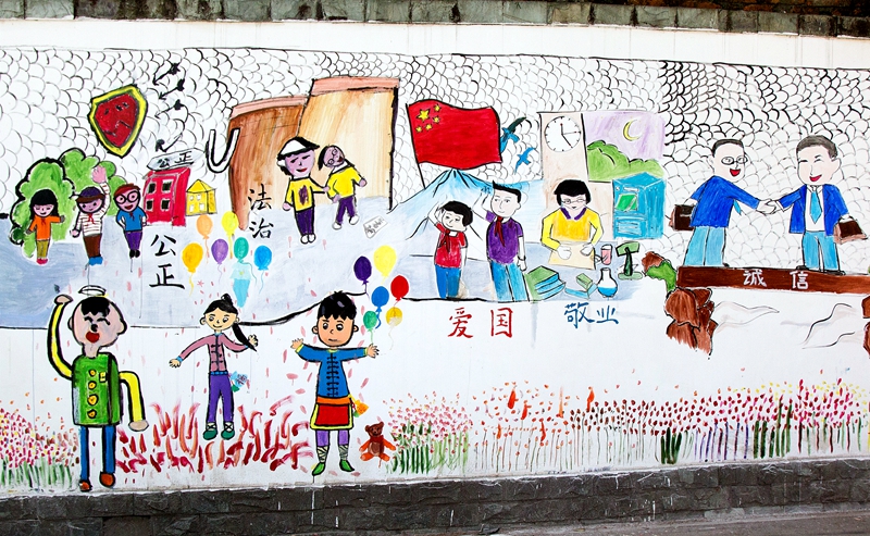 社區文化墻宣傳內容涵蓋文明禮儀、中華美德、文明交通、核心價值觀、科普知識,對當前群眾中普遍存在、習以為常的不文明行為及生活常識,以圖文的形式進行宣傳、規范與勸導,讓居民在輕松中接受文明教育。