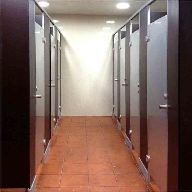 1、抗倍特板:抗倍特板目前來說是衛生間成品隔斷中流行的材料了。它的制作工藝是由裝飾色紙含浸三聚氰胺樹脂,再加上多層黑色或褐牛皮紙含浸酚醛樹脂層疊后,用鋼板經由高溫高壓的環境壓制而成,是屬于一種人造板。由于人造工藝其色彩花紋非常豐富,因此也是運用的特別廣泛的一種材料。