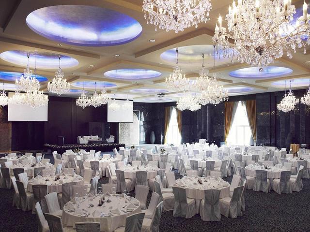 (3)酒店婚宴區(qū):如果這是酒店的主要的經(jīng)濟(jì)體系,那就可以將裝飾燈具充分發(fā)揮在這些地方,利用好這些裝飾品位新人增添整體的氛圍?;檠鐓^(qū)同樣在高度上還是有要求的太矮顯得壓抑,空間的大小決定桌椅的擺放量,解決方法可以采用隔斷的方案。