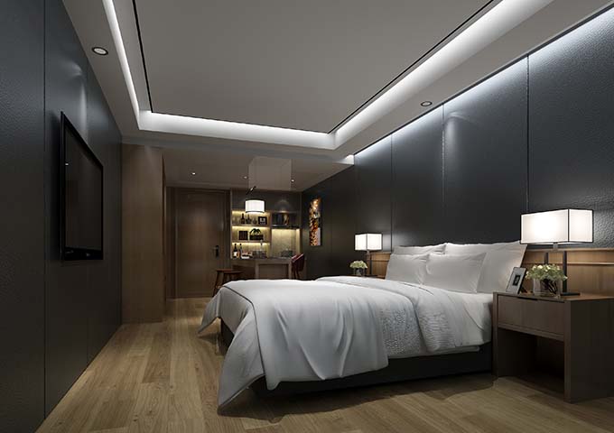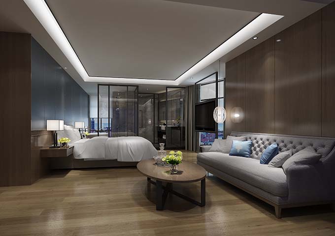 主題酒店客房人性化設(shè)計體現(xiàn)在,對于私密性較強(qiáng)的臥室和公共走廊間隔音的處理。客房走廊與臥室之間有一道墻,類似影壁,即阻隔了聲音的直接傳播,又增加了空間的層次感,當(dāng)然厚厚的門和有力的閉門器也對聲音傳導(dǎo)起到了阻音的作用,改變了以往的“隔墻有耳”,杜絕噪音互擾,從細(xì)部真正做到為賓客著想,體現(xiàn)了現(xiàn)代客房的人性化設(shè)計和布局。則很多精品主題酒店和主題酒店注重的往往是外觀、包裝和檔次。