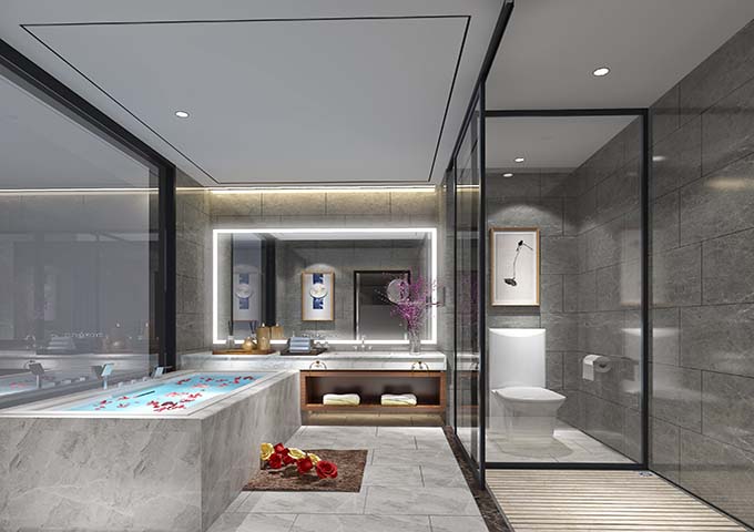 燈光既不可太明亮,也不能昏暗,要柔和并且沒有眩光。 可以考慮采用壁光或墻邊光反射照明。在門的上方最好設計一個開門燈,而使客人感覺服務的周到。
