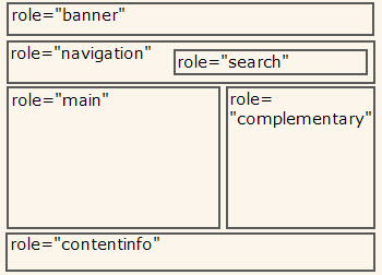 這個(gè)是成本最低的方法了,添加的方法就是給相應(yīng)功能的元素添加role這個(gè)屬性,并賦予響應(yīng)的landmark值。一共有8個(gè)值,一般你只能用到6個(gè):banner(banner)、complementary(輔助內(nèi)容區(qū))、contentinfo(網(wǎng)站信息和版權(quán))、form(表單)、main(主內(nèi)容區(qū))、navigation(導(dǎo)航區(qū))、search(搜索區(qū))。如果一個(gè)表單,他僅僅是提供搜索功能,那么就將role設(shè)置為search,而不是form。