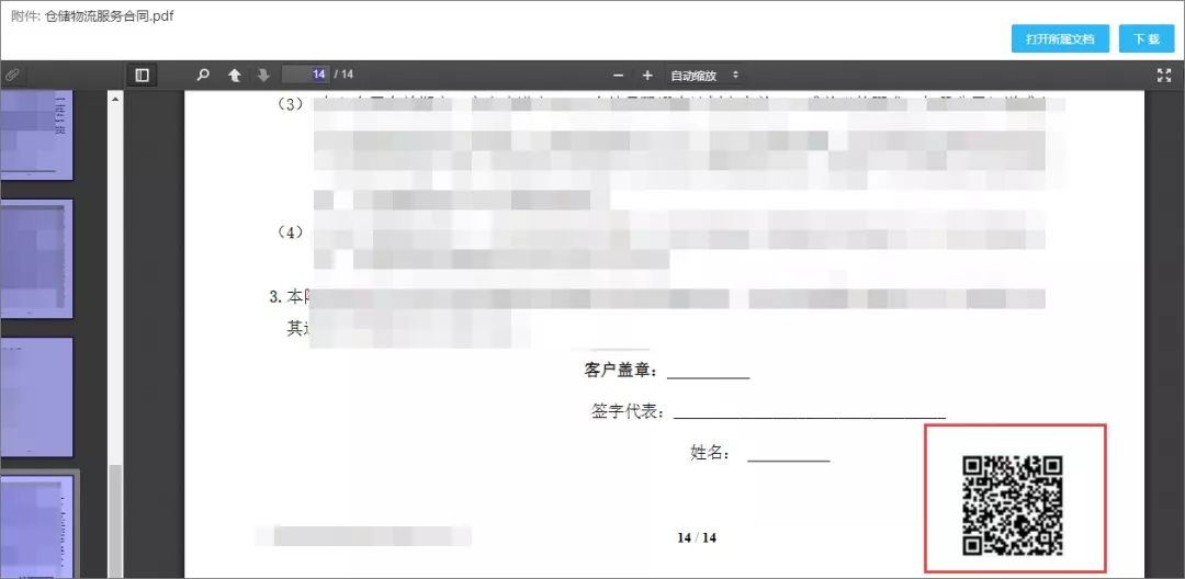 泛微OA系統(tǒng)為每一份合同設(shè)置了一個對應(yīng)的二維碼,法務(wù)提交流程后,合同最后一頁會自動插入二維碼。