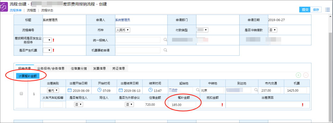 通過建模將各地區(qū)標(biāo)準(zhǔn)導(dǎo)入,發(fā)起補助申請流程時,可直接引用該地區(qū)數(shù)據(jù),并且可在表單自動計算餐補金額。