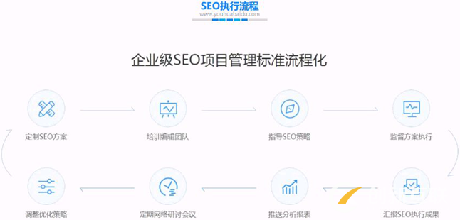我們有一個完整的SEO執行流程,環環緊扣,實現企業級SEO項目管理標準流程化。在官網優化上,關鍵詞達標率達70%-80%,這個可能概念性不強,比較一下吧,一般優化公司的關鍵詞成功率高40%。在下拉搜索優化上我們在持續增長,難度較大的相關搜索上我們也在探索之中。 以官網優化起步,從下拉框來提升品牌傳播力,在相關搜索提高品牌價值。