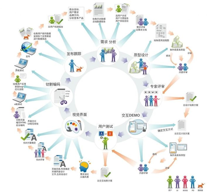 一個產品最終的呈現效果有賴于成員間的有效溝通,這就需要良好的團隊溝通與協作能力進行支撐。而UI/UX將在一項完整的項目周期體驗以下流程: