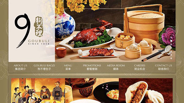 金黃色又一次出現了,當進入狗不理餐廳網站,首先映入眼簾的是黃色和紅色,這是中國用以展現食物慣用的色調,更直觀的展現了食物本身的顏色。