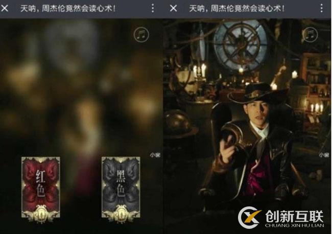 H5交互視頻:《天吶,周杰倫竟然會讀心術!》 這屬于“周年慶+視頻+測試答題”的交互視頻類型。電競男神周杰倫化身中單英雄“卡牌”,通過一副牌去猜測你心中所想之牌,前提是玩家需要根據給出的選項回答周董的三個問題; 而后檢測周董是否能夠看出你的內心,最后在尾頁爆出英雄聯盟六周年狂歡盛典的時間和地點。