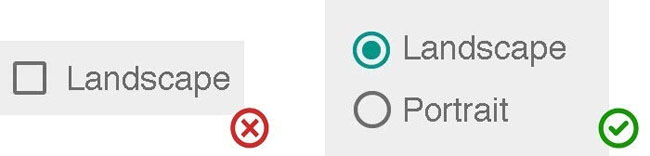 當(dāng)清晰的checkbox表達(dá)的含義不夠明確時,可以使用單選框。在下面的例子里,兩個選項(xiàng)意思相反,所以使用單選框的效果更好。