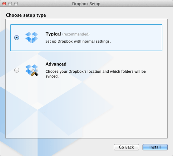 如果系統(tǒng)強(qiáng)推某個選項(xiàng),可以在選項(xiàng)旁增加“推薦”的標(biāo)簽 范例:DROPBOX
