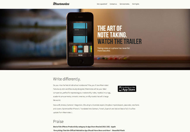 靜音圖片的使用會讓人們打開你網頁的第一時間就感覺很舒服,也是最近非常流行的一種風格。大部分的靜音圖片都運用了漸變和顏色淡化的效果,也有復古的風格。而文字也是在圖片的頂部,和圖片風格非常協調。這種風格經常在一些攝影師的個人網站上面運用,自從去年開始就變得非常流行了。我也非常精細的發現到,與這些靜音圖片相配合的都是一些裝飾性字體,這樣就起到了很好的頁面平衡作用。