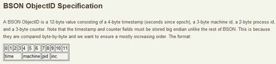 ObjectId如果用字符串表示則有24個字符,但實際上它是由一組十六進制的字符構成,每個字節(jié)兩位的十六進制數(shù)字,總共用了12字節(jié)的存儲空間。