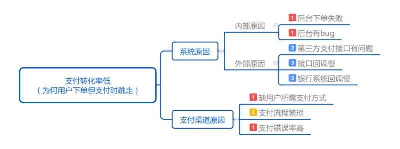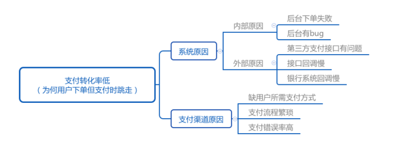 思維框架是要素的窮舉,并且能站在高層次看清楚要素之間的聯系,看清楚要素全貌。在分析問題時候,我們可以用思維框架來鋪開整個圖譜,看清楚其中的關鍵。比如如果某商城從下單到支付,轉化率很低,那我們可以嘗試用思維框架來分析。從各方面找出轉化率低的原因。