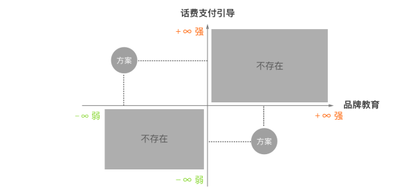聰明的你一定會發現,既然“話費支付引導”與“品牌教育”是相反的變量,那么完全可以將二維矩陣圖變形,變成反比例函數圖像。