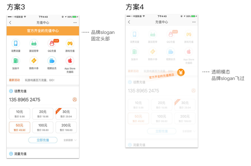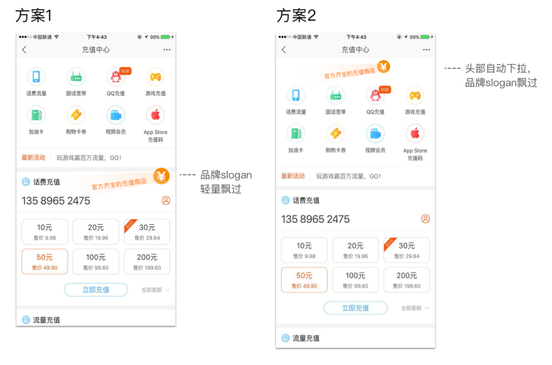 突出品牌-但是同時也希望傳達品牌概念,讓用戶可以可以知道這里可以充所有業務。