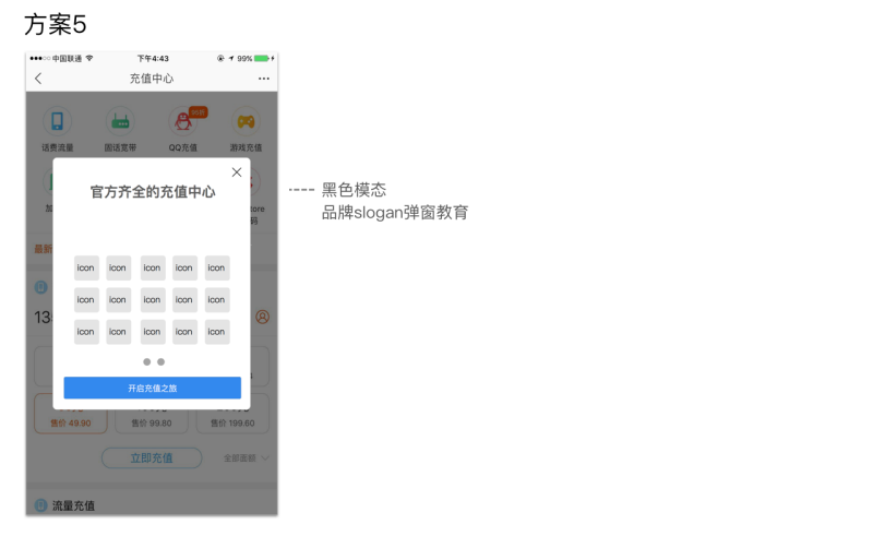 (由于項目沒上線,不能展示設計稿,所以可以用競品淘寶的【充值中心】來闡述這個思考過程)