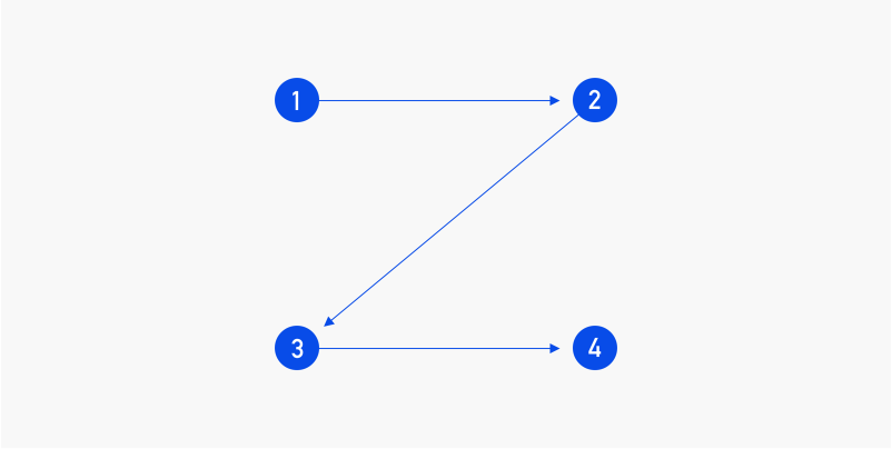 另一個模式的特點是曲線型,通常用于視覺上被內(nèi)容模塊劃分的頁面。讀者的視線時從左到右的,由左上角開始,從整個頁面上移動到右上角,瀏覽初始交互區(qū)域的信息。