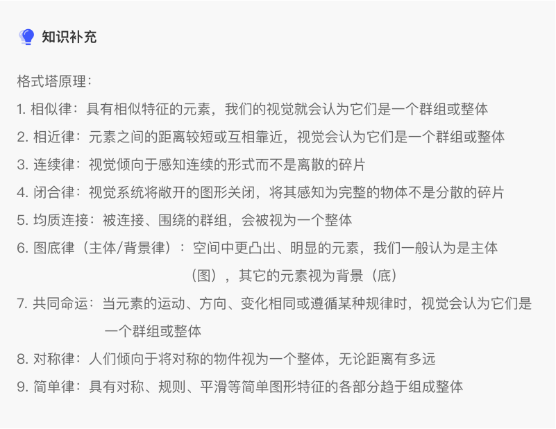 負空間(留白)不僅是設(shè)計元素之間的區(qū)域,實際上是每個視覺構(gòu)圖的核心部分,能讓界面元素引起用戶的注意。此外,負空間有助于強調(diào)用戶需要高度關(guān)注的特定元素,是創(chuàng)建視覺層次結(jié)構(gòu)的有效工具,因此設(shè)計師需要平衡使用。如下圖:盡管沒有分割線,也可以通過負空間的方式將各個模塊清晰的區(qū)分,做到各自獨立、整體獨立、準確傳遞信息的效果。