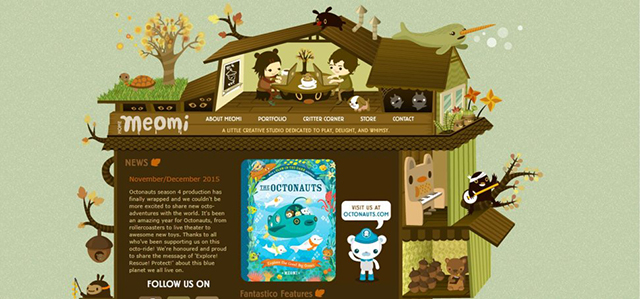 整個Meomi的設(shè)計包括有趣的角色,當(dāng)你滾動它們的時候,它們會移動和回應(yīng),在你探索的過程中,整個體驗充滿了發(fā)現(xiàn)和快樂。我特別喜歡這個網(wǎng)站,因為它很忙,你很快就會知道,它的主題是什么,它的標(biāo)題是“一個小的設(shè)計工作室,專注于游戲,快樂,和威士忌。”