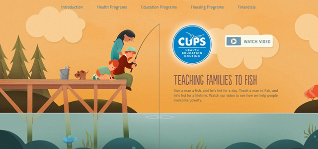 CUPS是一個慈善網(wǎng)站,利用它的設(shè)計和插圖以一種吸引人的方式傳達(dá)他們非常嚴(yán)肅的信息。插圖使頁面更有趣。它甚至讓動畫更加有趣。所以,即使這個主題是非常嚴(yán)肅的,通過使用這個有趣而有趣的方法,我們可以在整個網(wǎng)站上看到,我們能夠讓訪客留下,繼續(xù)閱讀。