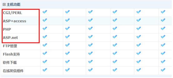 網站的開發語言有很多,常見的有asp、asp.net、php等,不同語言所需要的系統和運行環境并不一樣,所以在購買主機前需要知道自己網站使用的是什么語言,需要什么樣的運行環境,以便選擇合適的配置,各型號虛擬主機支持的程序可以在主機配置頁面中看到。