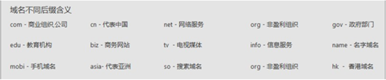 由于域名類型的不同,域名有很多種后綴。有英文的、符合中國網民輸入習慣的中文域名等。同一個域名的不同后綴注冊越多,越能保證域名的唯一性、排他性,起到企業品牌保護的作用。同時,注冊多個域名后綴,可以讓人通過更多的輸入方式訪問,增加網站推廣的效果。