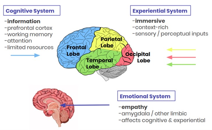 伊科納大學沉浸式學習和數據科學家Todd Maddox說:“傳統的講座或基于文本的學習方法側重于信息的灌輸,而VR側重于體驗。大腦中包含前額皮質的認知技能學習系統負責處理信息。這是一個神奇的系統,但它受到工作記憶和注意力能力的限制。學習時處理信息意味著二維的、靜態的(通常是抽象的)信息,如文本,必須在大腦中轉換成三維的、動態的、真實的世界表征。簡而言之,這是非常困難的,而且會增加工作記憶和注意力系統的負擔?!?/p>