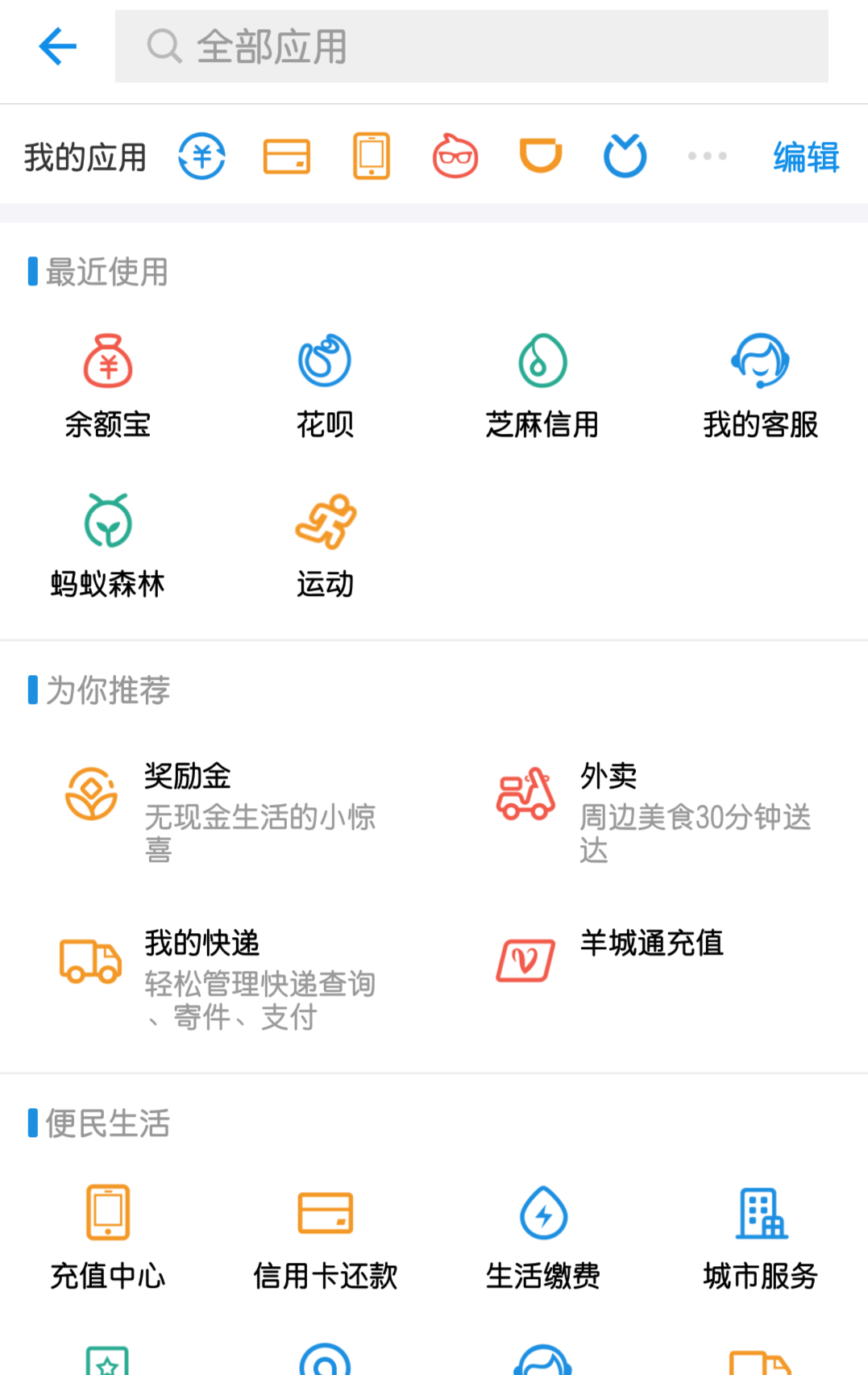主要入口全部聚合在頁面,讓用戶做出選擇。這樣的組織方式雖然無法讓用戶第一時間看到內容或執行操作,用戶的選擇壓力也比較大。但卻能夠讓用戶整體上了解APP提供的服務,從而選擇自己所需要的那個服務。這種導航于一些提供的服務較多或者類目較多的APP,例如支付寶、優酷等。